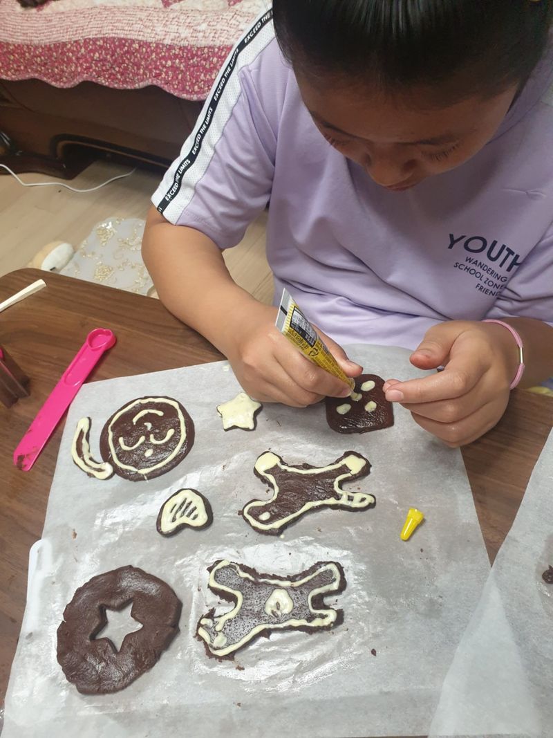 손으로 뭔가 만들어 보는걸 좋아하는 우리 아이들을 위해 오늘은 쿠키만들기 도전! 내가할래..나도할래 하며 손수 두 시간을 열심히 반죽부터 조물조물 꼬물꼬물.각자 맘에드는 모양으로 만들어 결국 완성해서 굽고 맛있게 먹기! 오늘도 한가지 요리 완성~!!