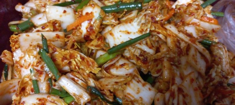 네 번째는 온 가족이 좋아하는 배추 겉절이를 해 보았어요. 신김치를 싫어하는 저희 집 식구들은 갓한 겉절이를 자주 해먹는데요.