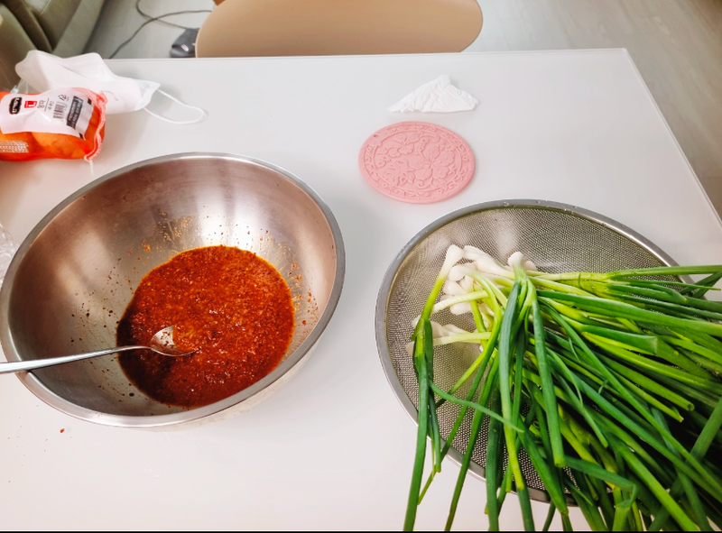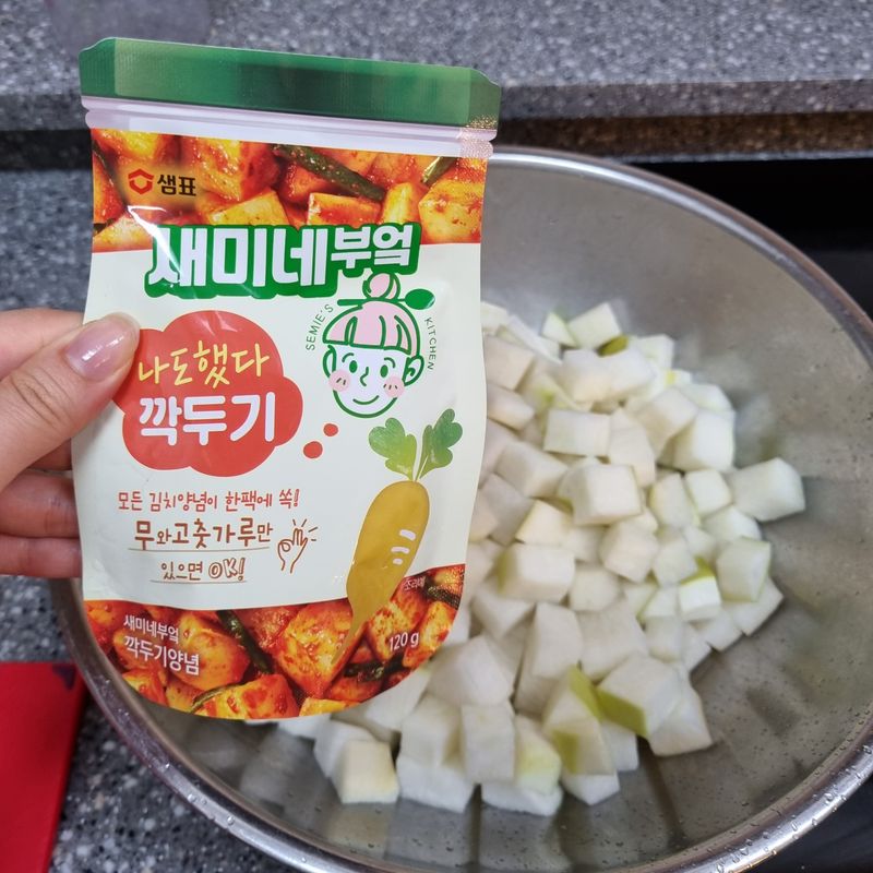 새미네 김치양념소스들로 깍두기랑 파김치 만들어서 맛있게 먹었어요!! 새미와 함께라면 김치들이 집에서 뚝-딱!