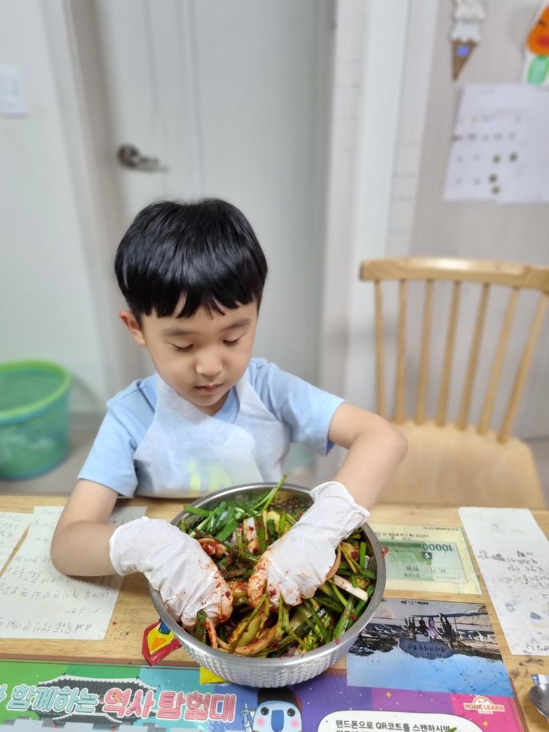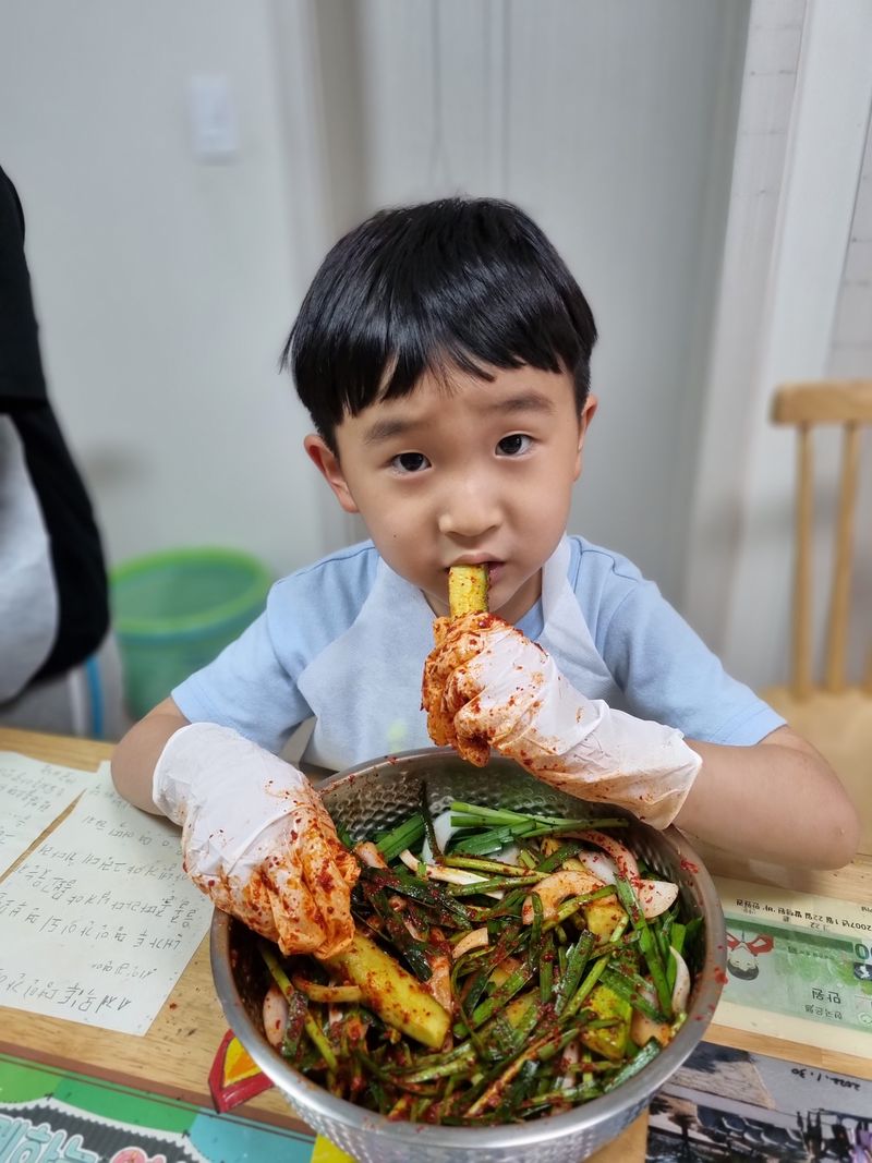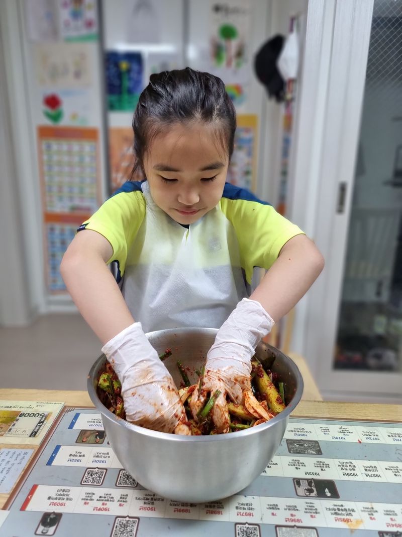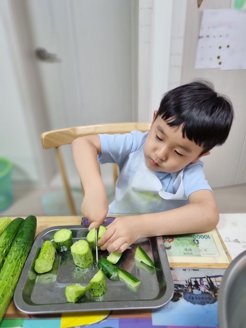 아이는 즐겁게 오이김치를 만들어 보았어요♡
