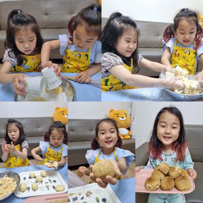 온 가족이 함께하는 첫 베이킹!! 감자빵 만들기 도전했는데 성공적이었어요!! ㅎㅎ 온 가족이 함께해서 더욱 즐거운 요리활동 이었네요^^