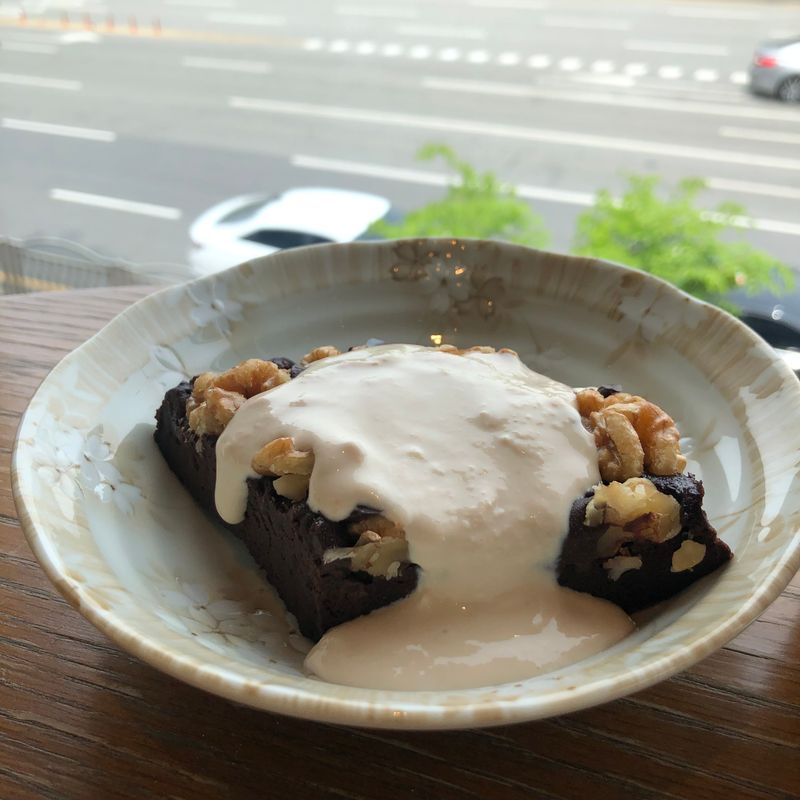 버터, 계란, 생크림 등 동물성 원료 없이 두부로 브라우니 시트 만들고 두유크림 만들어서 뿌려줬어요 ㅎㅎㅎ