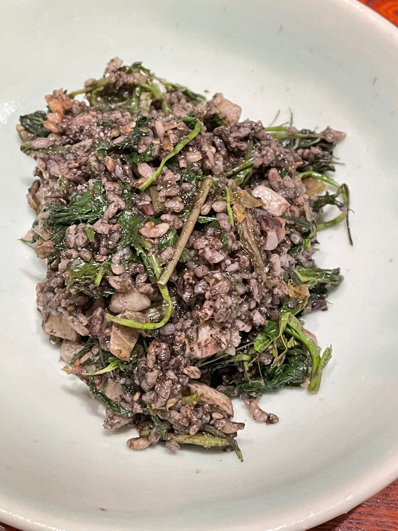 제철 갑오징어 삶아서 먹다가, 남은 먹물로 나물 볶음밥도 해먹고 ㅋㅋㅋ
