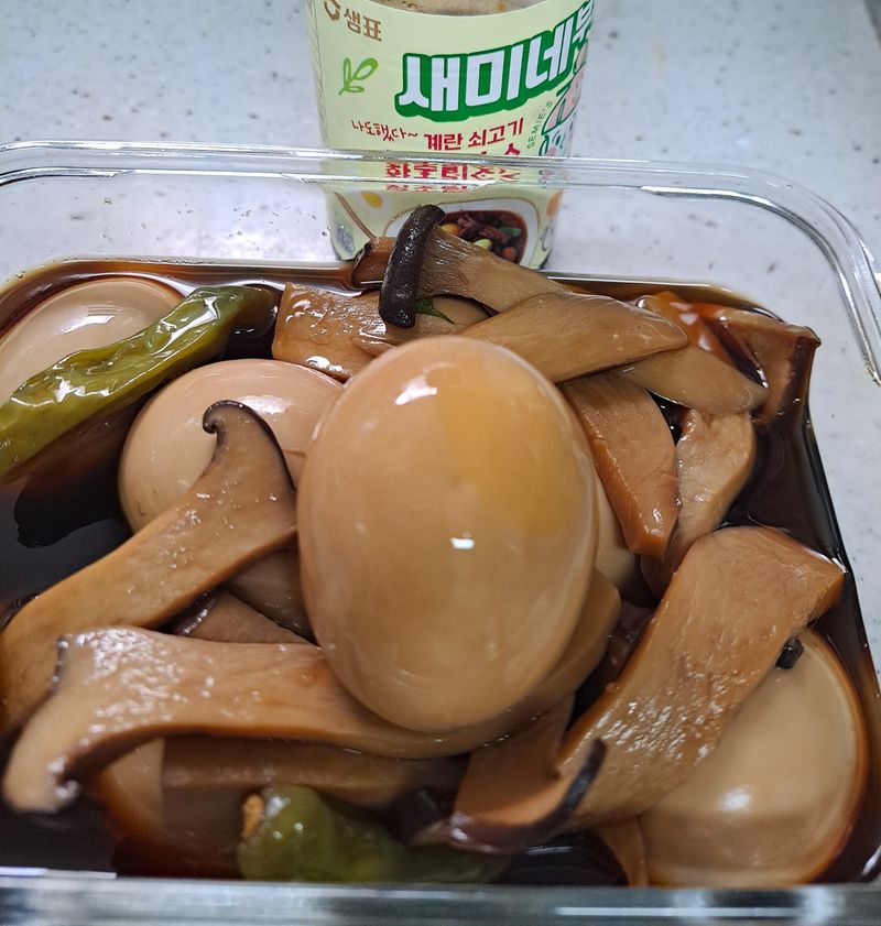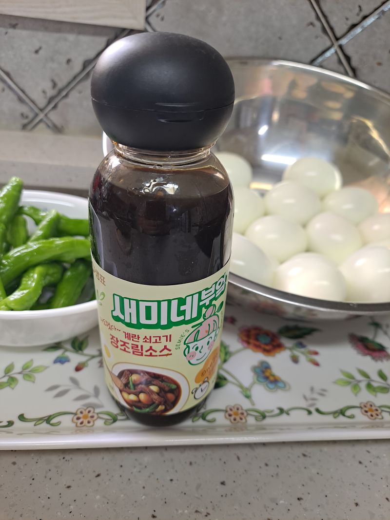 간편하게 계란후라이만 먹다가 새미네장조림소스로 만든 계란장조림 꽈리고추를 더하니 맛깔스런 계란장 완성 새미네소스면 다 요리할수 있는 용기와 금손탄생 요리를 즐겁게 맛있게 해주는 새미네소스 좋아요