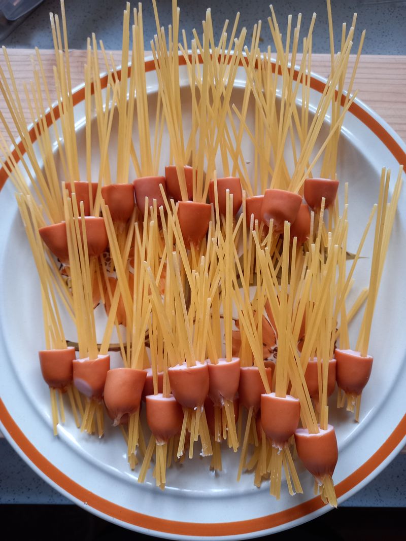 면이 가늘수록 소시지에 꽂을때 모양도 좋고, 부러지지 않으면서 잘 들어가는거 같아요.