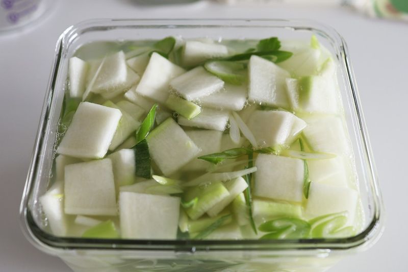 물김치 담는건 좀 까다로운지 반찬하는거 좋아하시는 시어머니도, 제 말이면 뭐든지 다 들어주시는 엄마도 이 물김치는 안 해주시더라구요..
