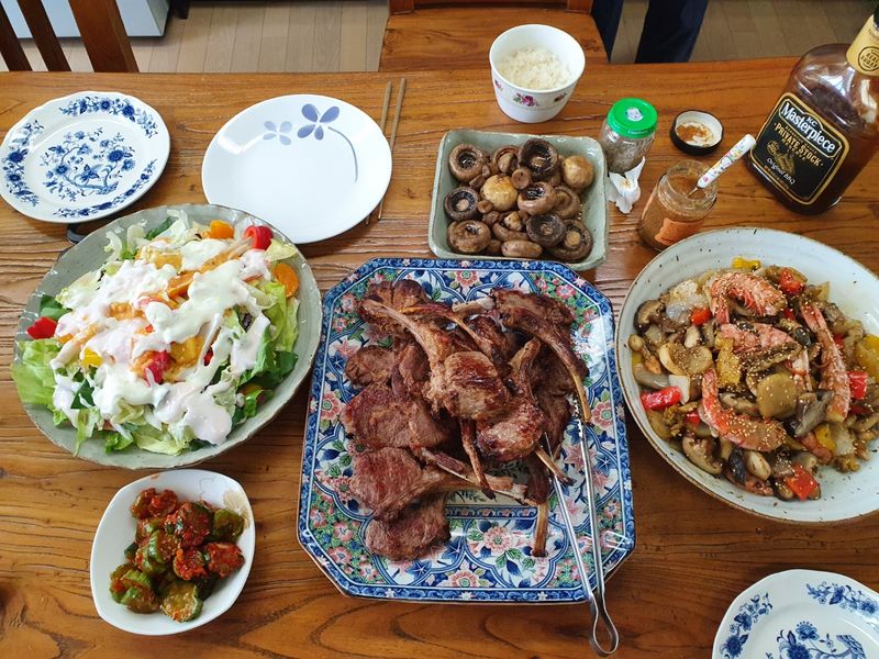 양고기는 잡내제거와 손질이 포인트입니다 코스트코 가서 질좋은 양고기를 사다가 맛있게 요리했어요 플레이팅까지 완벽하죠?