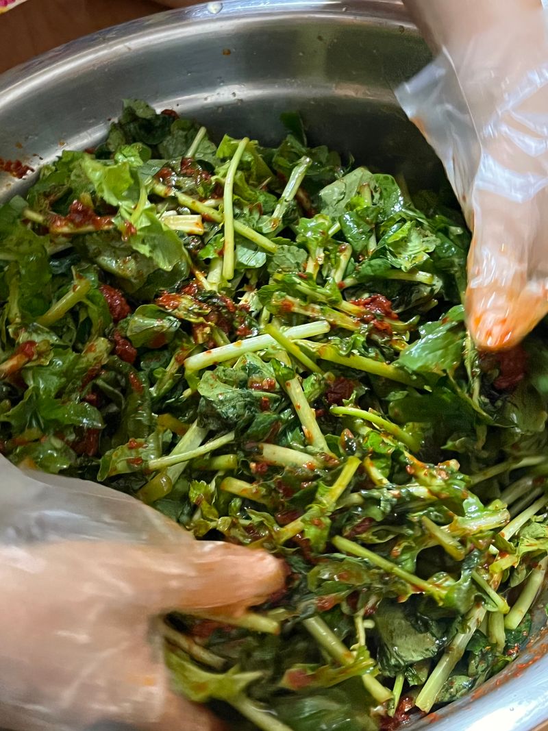 진짜 김치 신박템 새미네에서 열무김치양념이 나왔다해서 엄마랑 열무 철 & 여름맞이겸 열무김치 담궈봤어요! 진짜 재료 손질만 했을 뿐인데 이게 되네,,,, 냄새는 벌써 합격이지만 ㅎㅎ! 맛있게 익기만 기다려봅니당 🌝💚