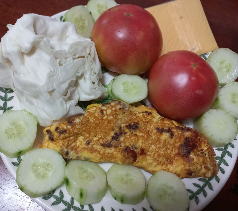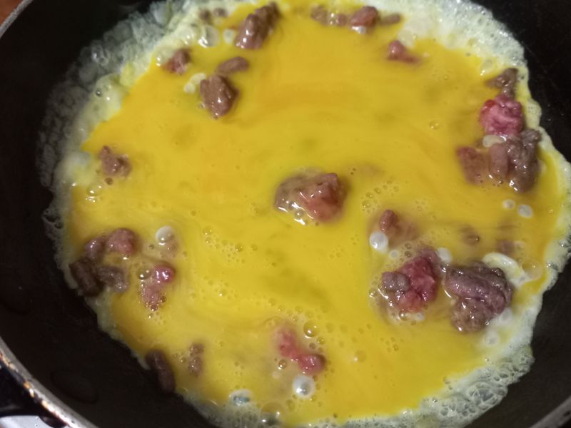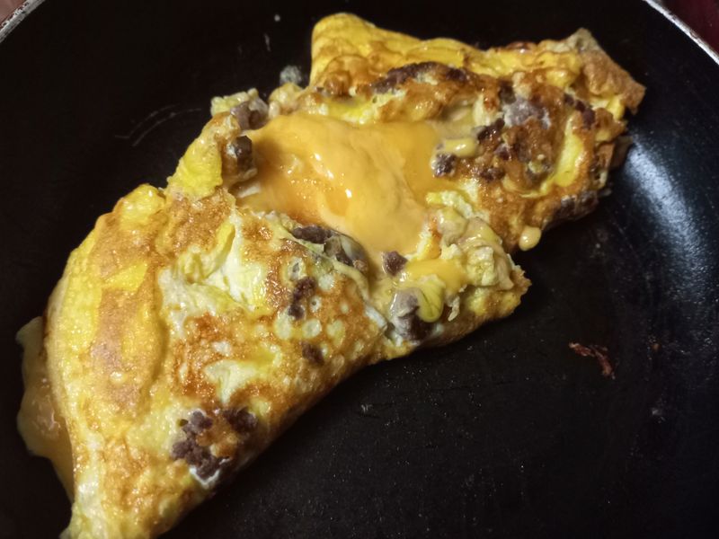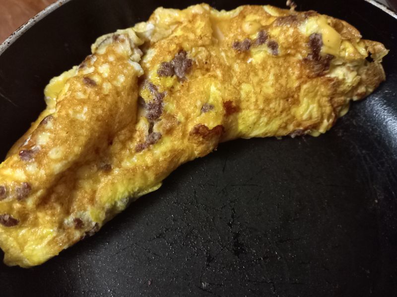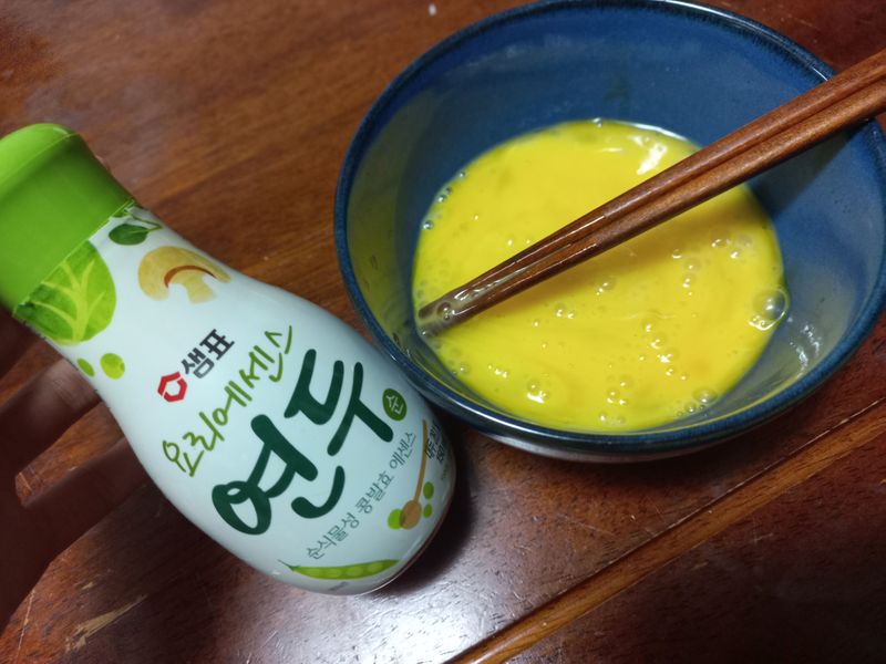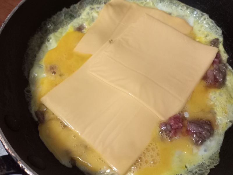 계란두개+슬라이스 치즈 3장+소고기다진거 약간+연두 한스푼!