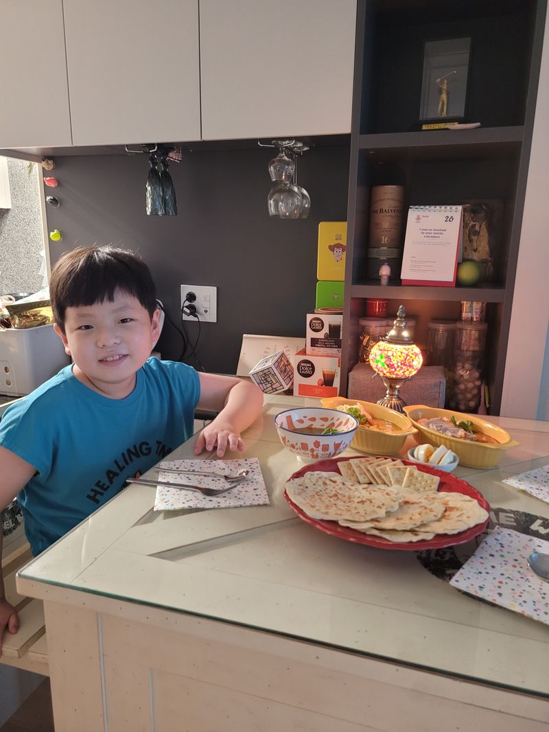 티아시아 커리를 종류별로 데우고 아이와 아빠가 힘을 합쳐 반죽하고 구운 난으로 주말 저녁식탁을 풍성하게 채웠어요♡ 너무 맛있고 즐거운 우리가족 요리데이였습니다! #한번더요리해요 #티아시아