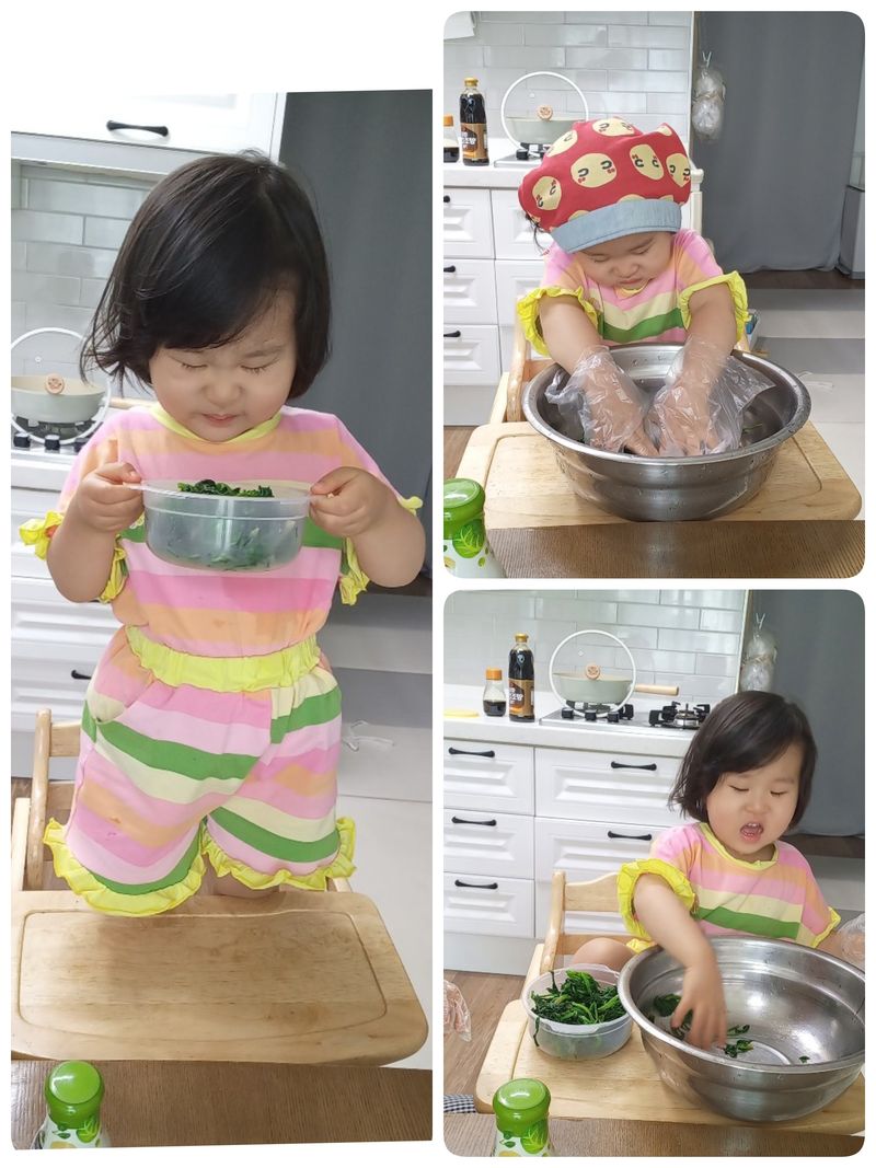 아이와 시금치 탐색해보고 시금치 무쳐봤어요.