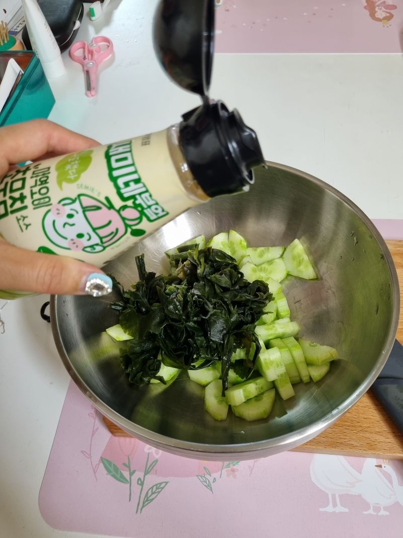 너무더운 요즘 ! 불도싫고 입맛도 없는 요즘! 새미네 새콤달콤 미역오이무침 소스 덕분에 순식간에 입맛돋우는 반찬하나 뚝딱 만들었더니.아이들이.최고라며 즐거워하네요