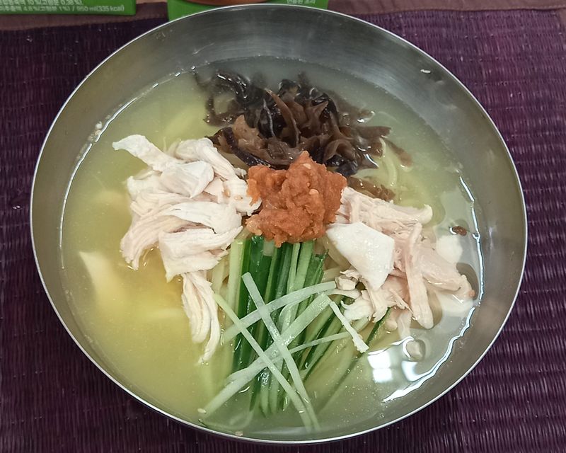 제가 수업시간에 완성했던 냉면과 그주에 집에서 만들어본 새미네닭가슴겨자냉채소스로 만든 냉면 인증샷입니다.