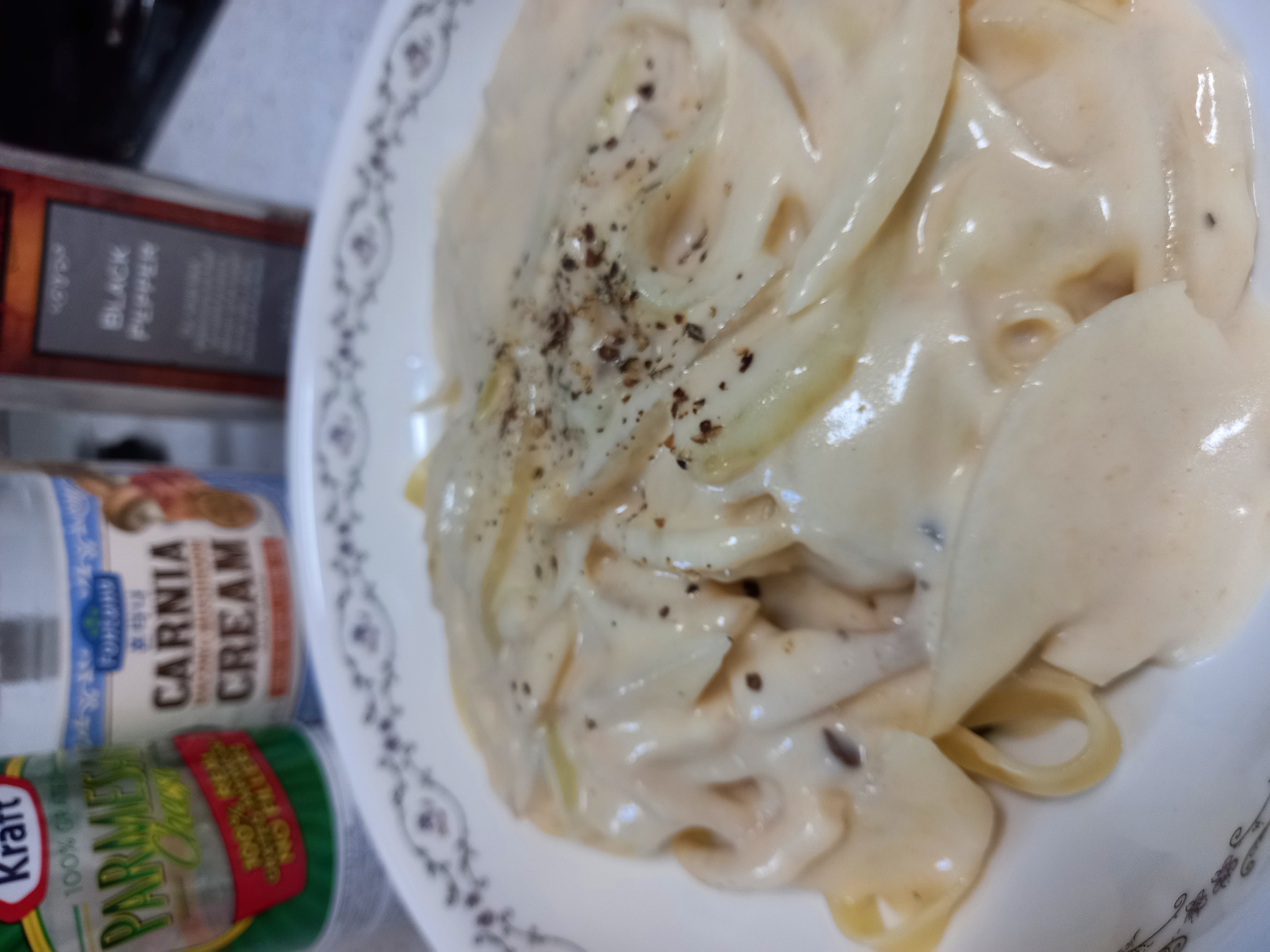 베이컨 없이 양파,버섯만 있으면 ok 면삻고 버섯양파썰어 소스붓고 우유,파마산치즈가루 넣어 끓여서 소스부어 올려주면 끝 꾸덕한 까르보나라 너무 맛있잖아
