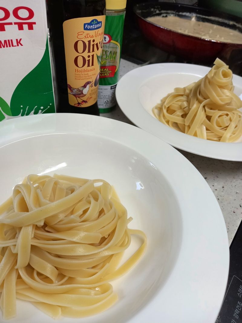 주말 집콕외식 특별한 집밥으로 까르보나라 스파게티로 즐거운 한끼 소스한병과 스파게티면만 있으면 후다닥 한여름 집콕 레스토랑 사랑하는 가족들과 먹는 최고의 집콕외식