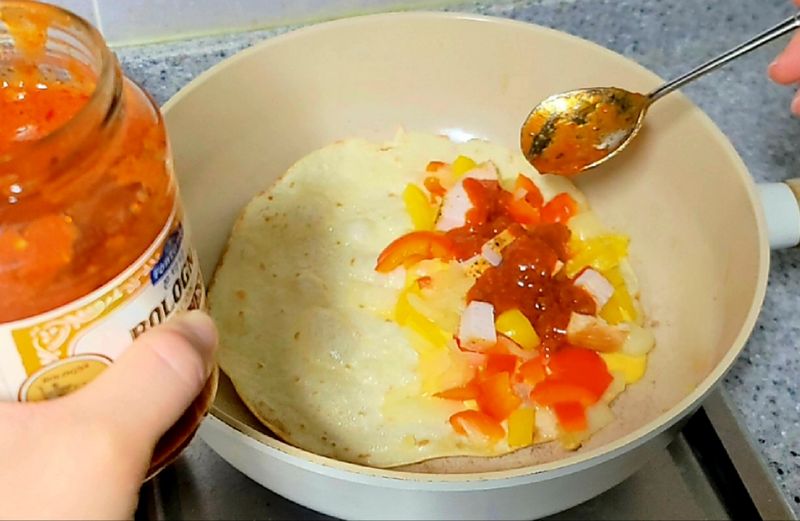 (3) 버터를 올린 팬에 또띠아를 올려줍니다.