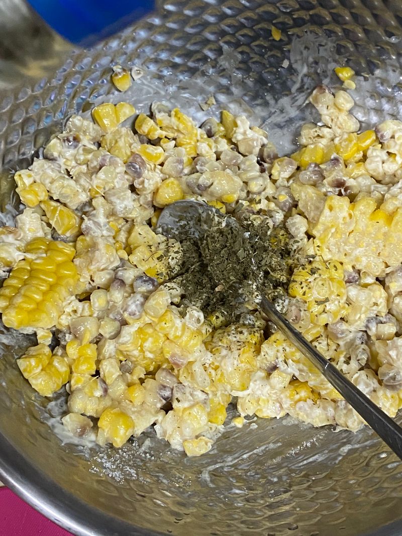 불없이 즐길수 잇는 콘샐러드 레시피 입니다~ 초당옥수수/ 마요네즈/ 후추/ 설탕 /치즈 준비해서 섞어준뒤에 전자렌지로 5분가량 돌리면 끝! 엄청 간단해요