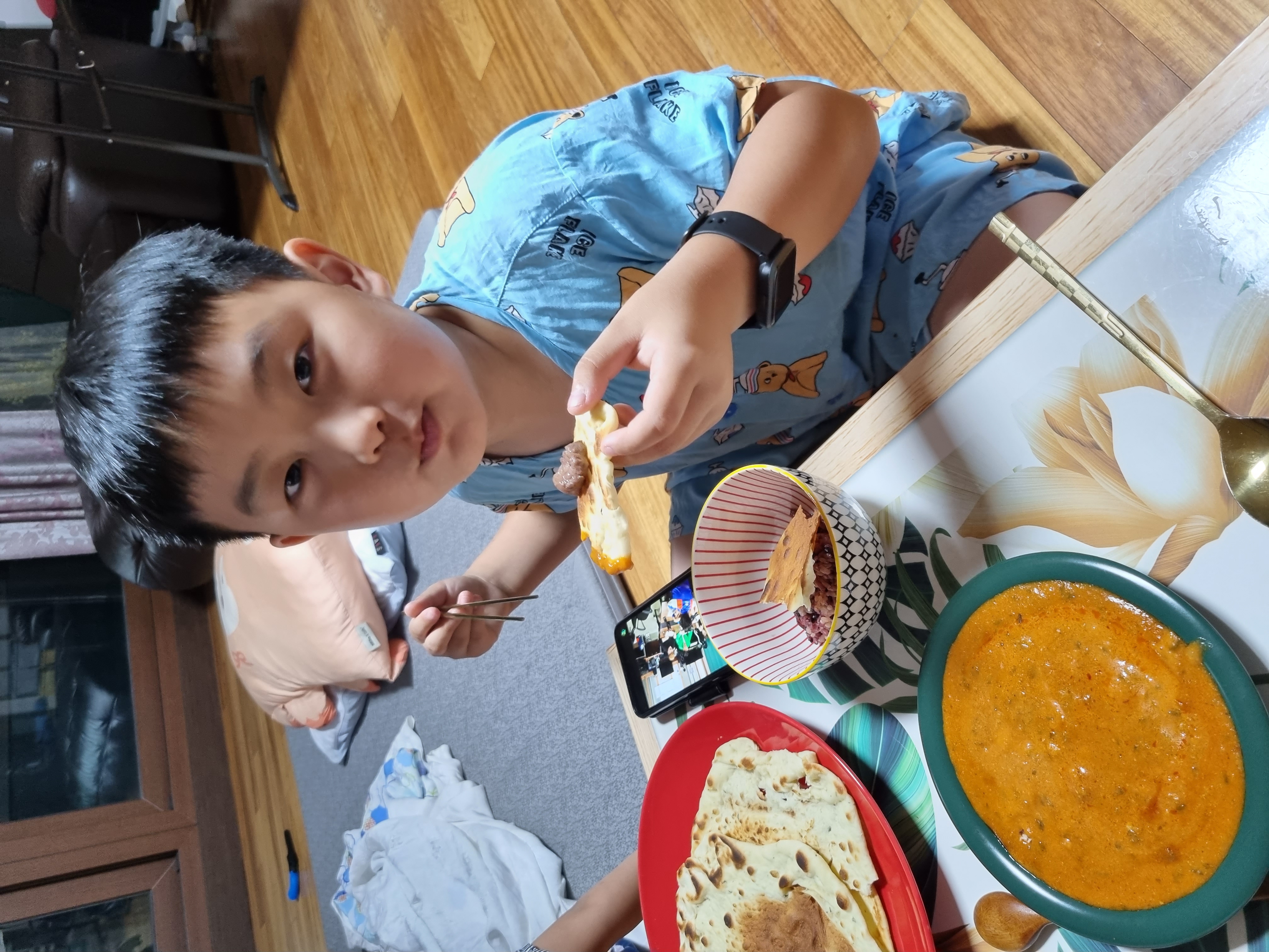 아이가 바삭한 난 맛있다며 너무 좋아하네요 커리 찍어서 소고기 올려서 먹는데 토마토 소스랑 잘어울리는 냄새도 다른 나라온것같아요 ㅎ