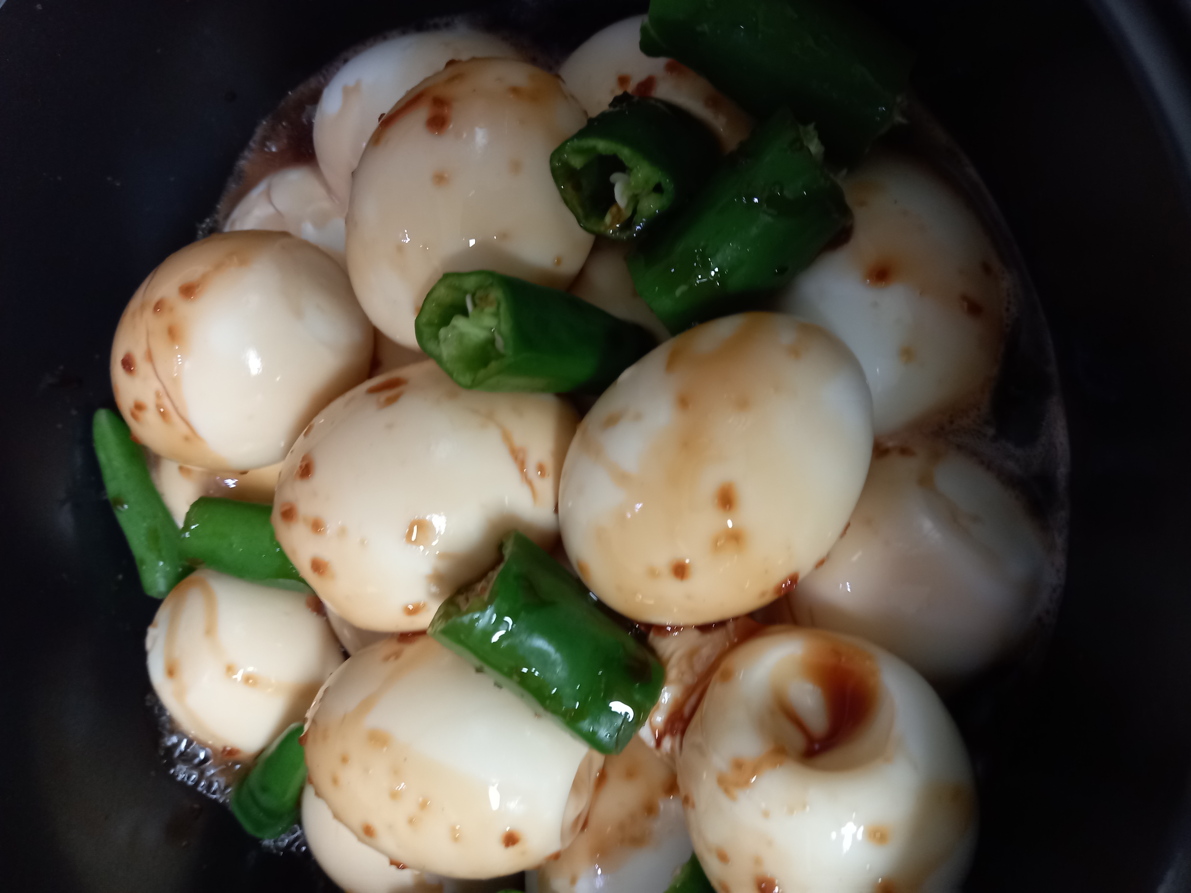 더운여름 초스피드 새미네장조림소스로 고추장조림 만들기 달걀삶아 고추랑 소스, 물 넣고 끓이기