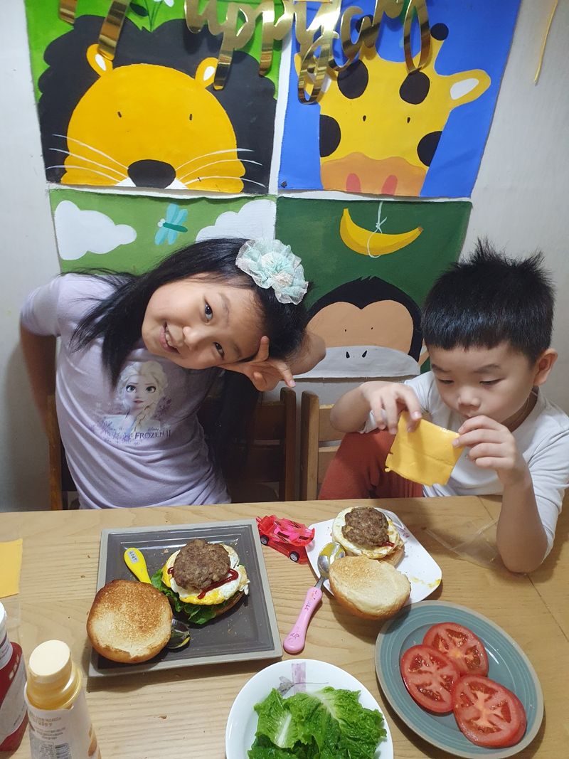 햄버거 패티만들어서 나만의 햄버거 만들기. 야채를 잘 안먹는아이들위해 패티에 각종야채넣고. 상추와 토마토도 잘라서 햄버거안에 쏙쏙~