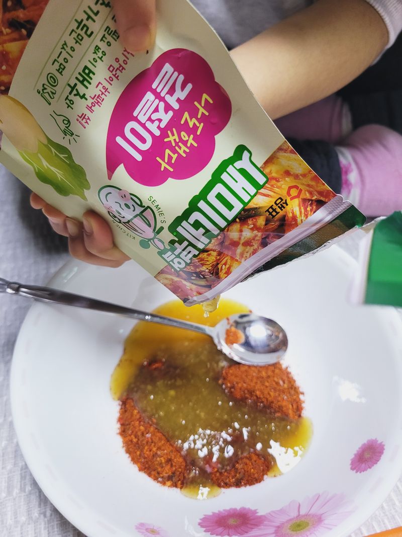 고춧가루에 새미네부엌소스만 넣고 저으면 완성!! 너무나 쉽고 간단하게 만들수 있어서 더 좋은거 같아요 🤩