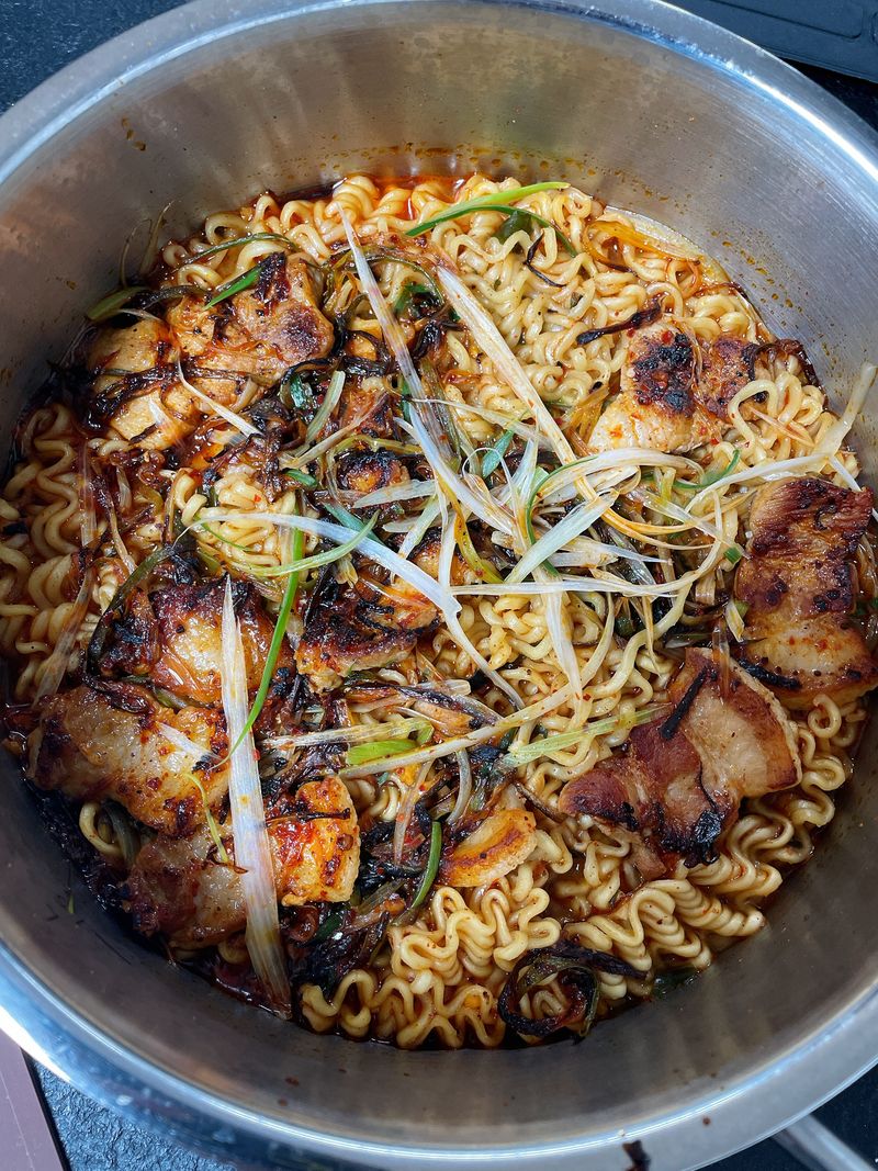요리 이름 맞추시는 분 계실지 ㅋㅋㅋㅋ 이 아이는 파삼탕면이에요 라면인데 볶음면이 되어버린… 밀키트로 받아서 분명 조리방법에 쓰인대로 했는데 왜 이렇게 된걸까요? 😹