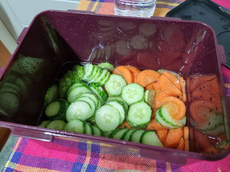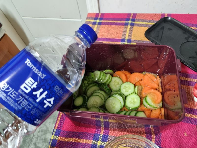 물과 피클소스 1:1 비율로 투입하고 냉장고 보관하기