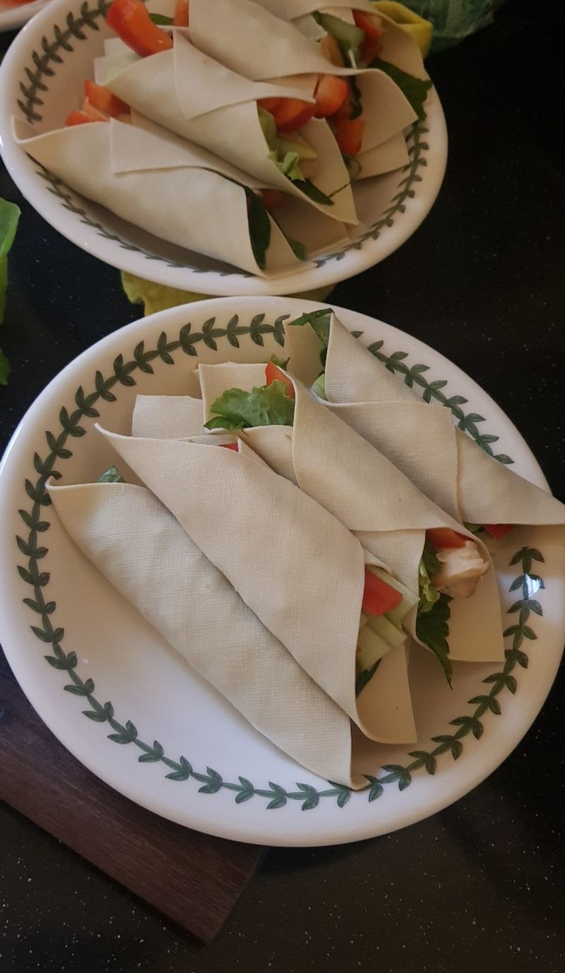 포두에 적당한 크기로 자른 야채 올려주고 말아주기만 하면 완성