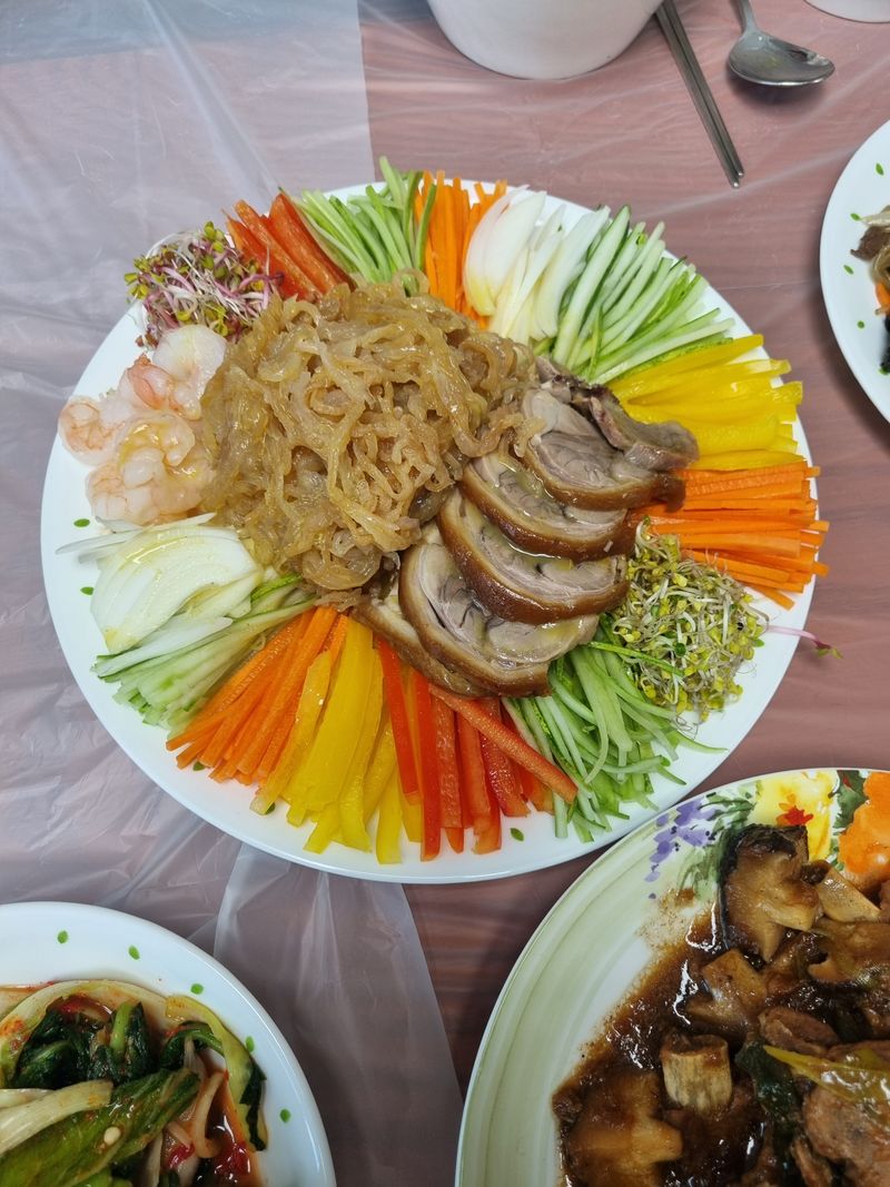 해파리삶고, 족발얇게썰고. 각종채소와 곁들여
