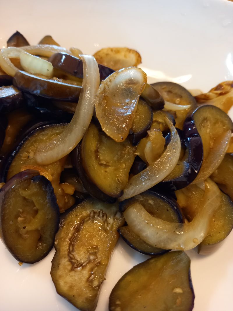 여름 제철 농산물 가지로 가지볶음 해봤어요~ 양파넣고 간장넣고 달달볶으면 맛있는 가지볶음 완성~~