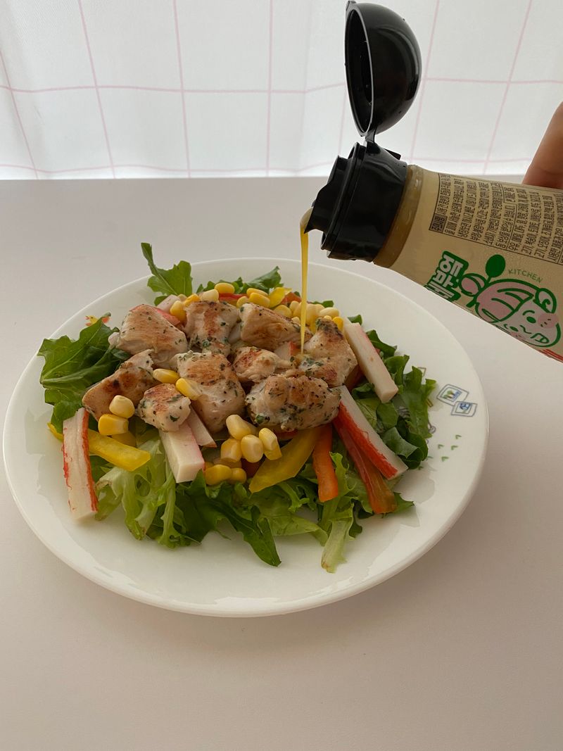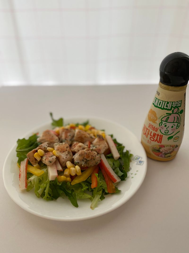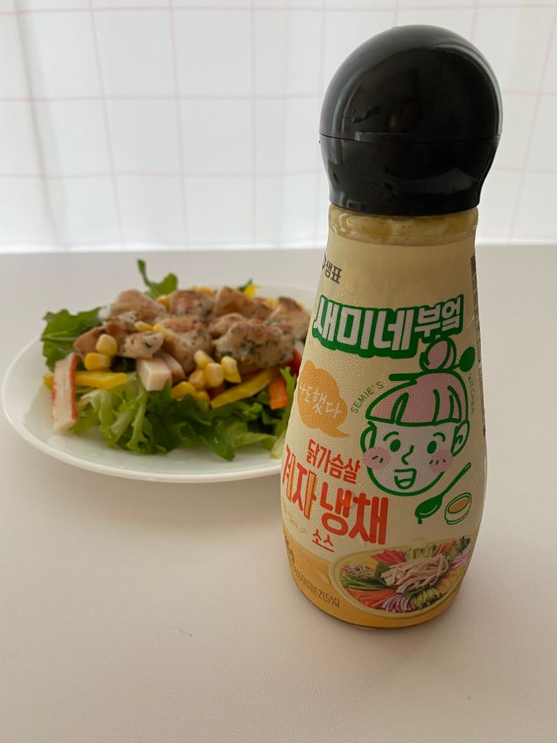 샐러드 소스로 새미네 겨자냉채 소스를 사용했어요
