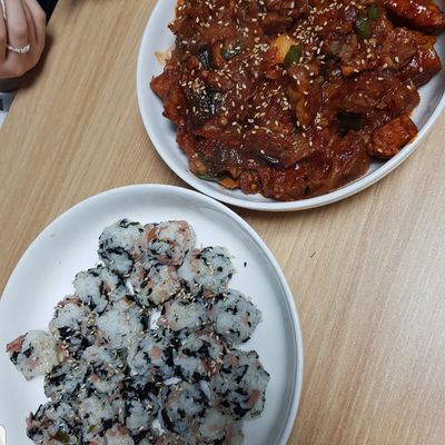 좋아하는 채소와 훈제오리 볶아 밥 위에 톡!