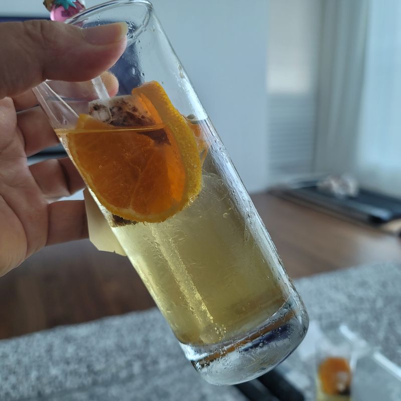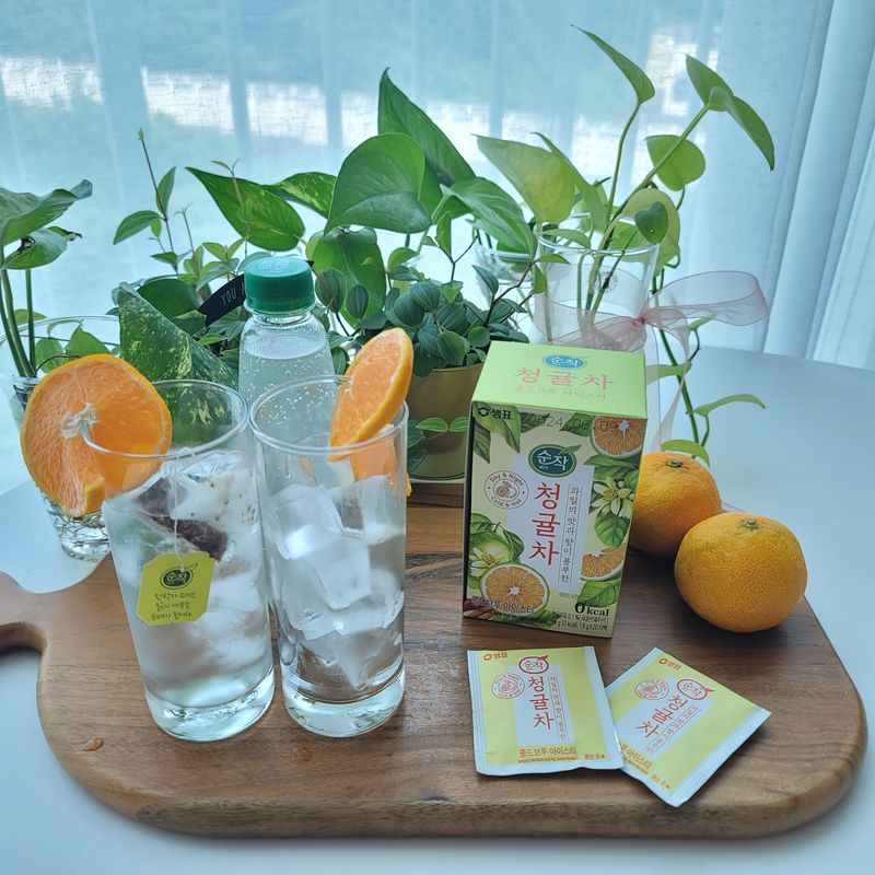 매콤한 떡볶이와 함께 순작 청귤차를 얼음이랑 탄산수에 섞어주니 탄산음료 대신 잘 마시네요.