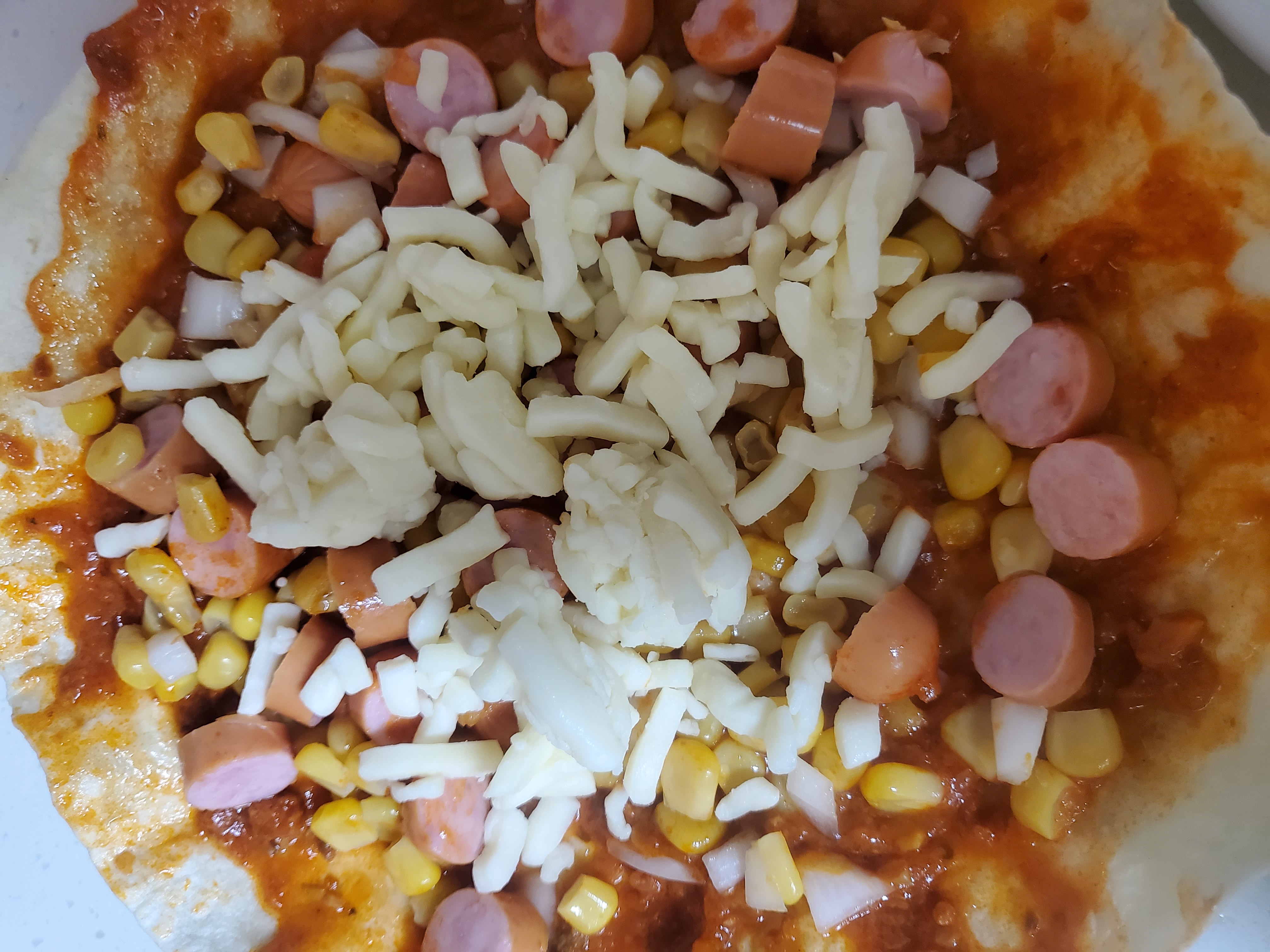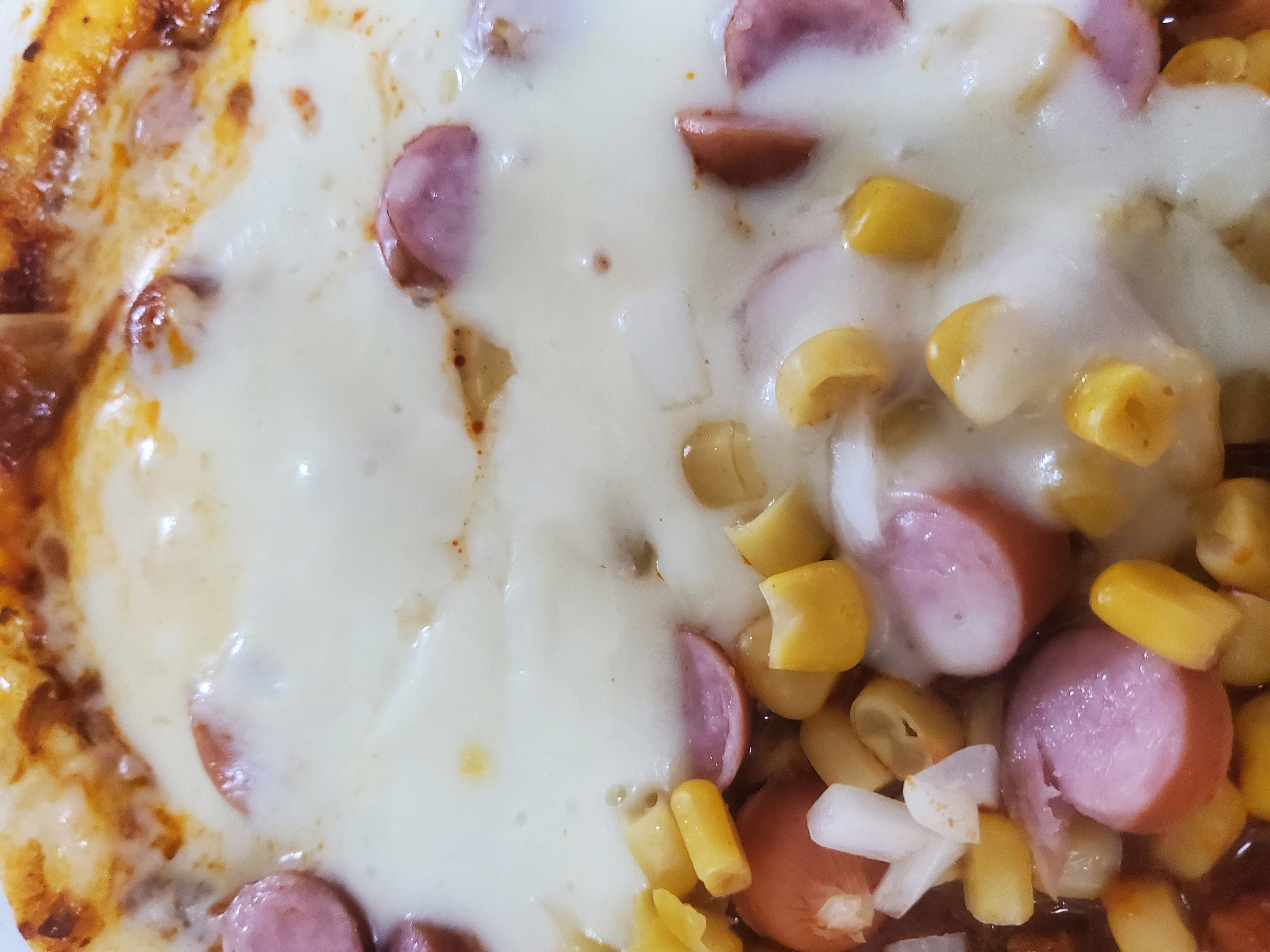 2.통조림 옥수수와 잘게 자른 양파를 올려줍니다