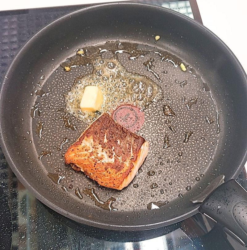 연어를 노릇노릇하게 잘 구운후 마지막에