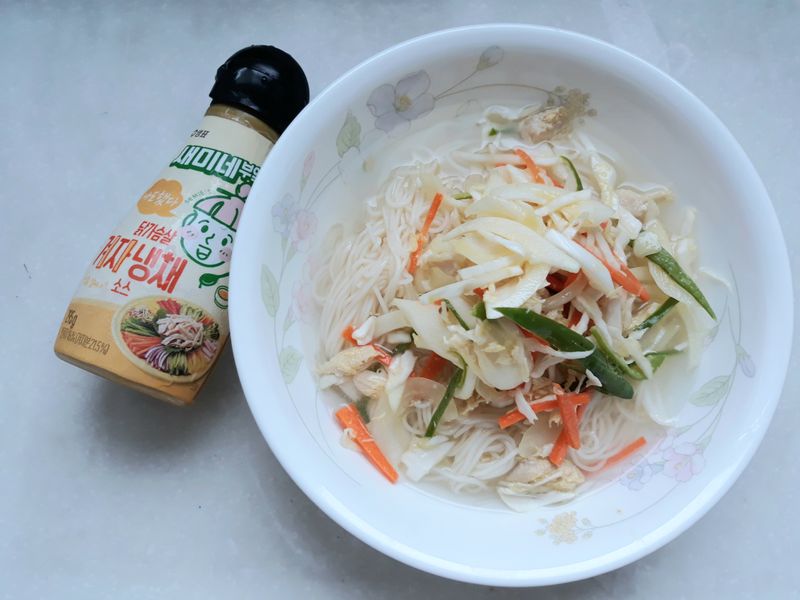 여름에 시원하게 맛있는 초계국수 세미네부엌 닭가슴살 겨자냉채소스 하나로 쉽고 편하게 만들었어요.