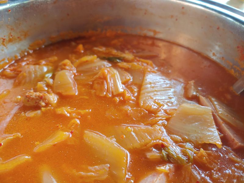 김치찌개는 김치가 다하는것 같아요. 맛있는 김치와 신선한 돼지고기만 있으면 국물이 끝내주는 김치가 되네요. 거기에 마법소스 연두 한방울! 밥도둑이 따로 없는 김치찌개가 완성됩니다.