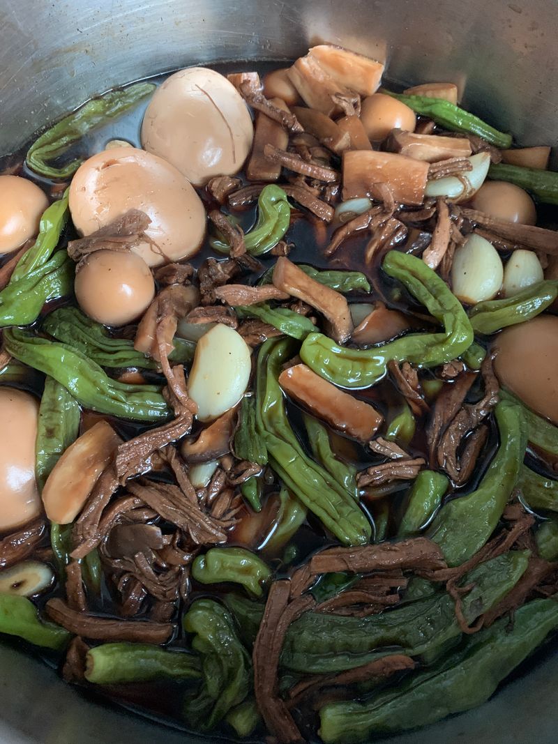 재료는 장조림용 (안심부위) 돼지고기 한근, 계란, 메추리알, 꽈리고추(안매운것), 마늘, 표고버섯, 새송이버섯, 후추, 매실청, 진간장, 맛술, 설탕, 물, 양파등