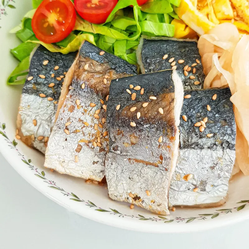 노릇노릇한 삼치구이, 계란, 양파, 채소 올리시면 완성이에요 ❤
