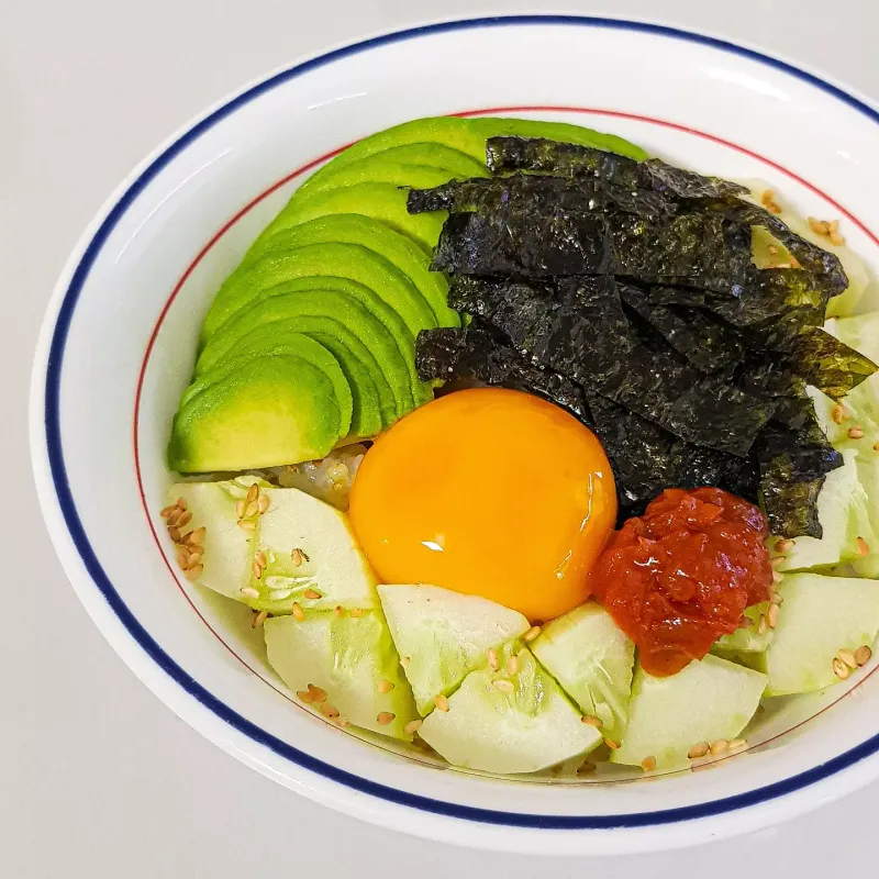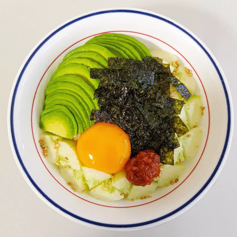 ✅ 오이 아보카도 비빔밥 레시피 1. 아보카도를 손질하고 얇게 썹니다. 2. 오이도 손질합니다. 3. 밥 위에 아보카도, 오이, 김, 노른자, 쌈장을 올립니다. 4. 참기름 두르면 완성! (김 많이 넣어서 드셔도 맛있을 것 같아요 ❤)