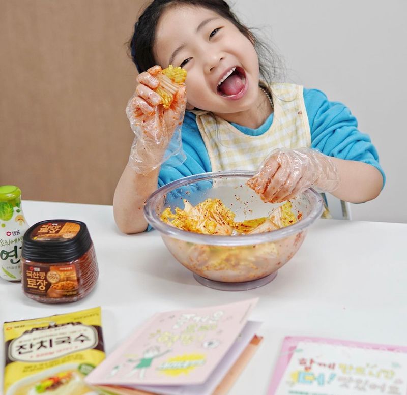 아이와 뭐해볼까하다가 10분겉절이 를 선택했어요 샘표 새미네부엌 요리키트가 있으니 요알못도 겉절이 뚝딱 ꕀ 아이가 양념들도 저어섞고 버무려서 김치만들었다고 왕뿌듯해했어요 새미네부엌 레시피북도 있어서 하나씩 다 만들어보려구요✨ ⠀