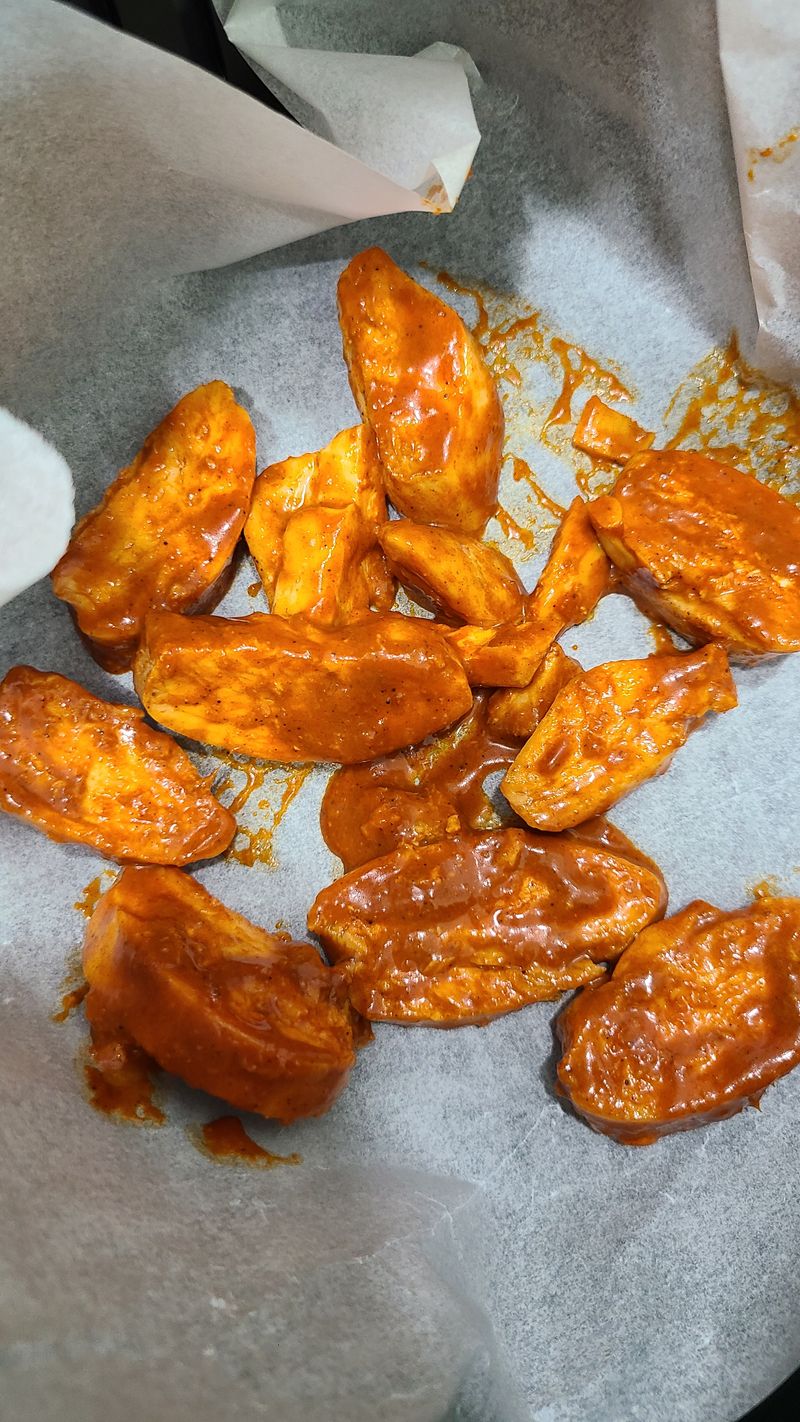 냉동실에 있는 닭가슴살로 탄두리 치킨 해봤는데 완전 성공적이었어요!!! 하하하 이제 탄두리치킨은 안사먹어도 될것같아요~~헤
