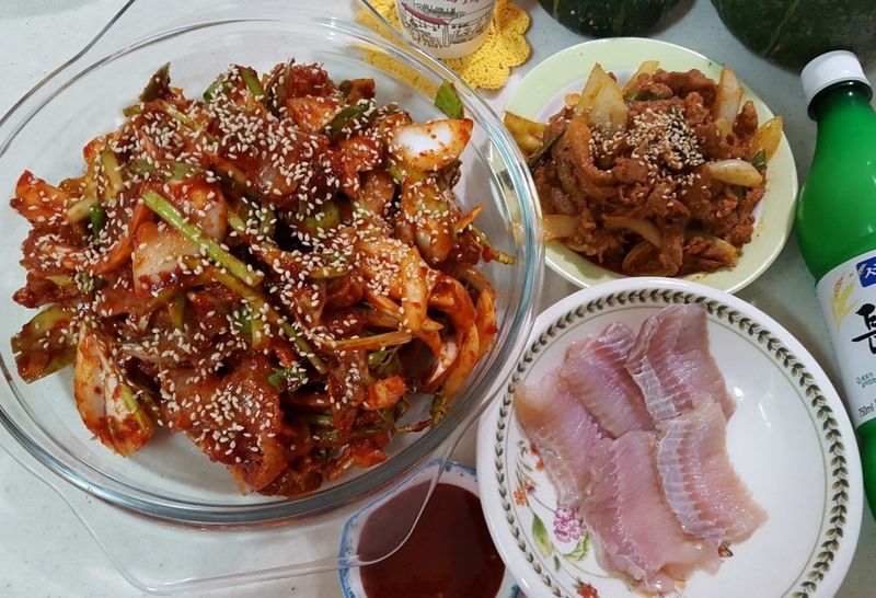 홍어랑 함께 먹을 제육볶음도 볶았어요 ㅎㅎ