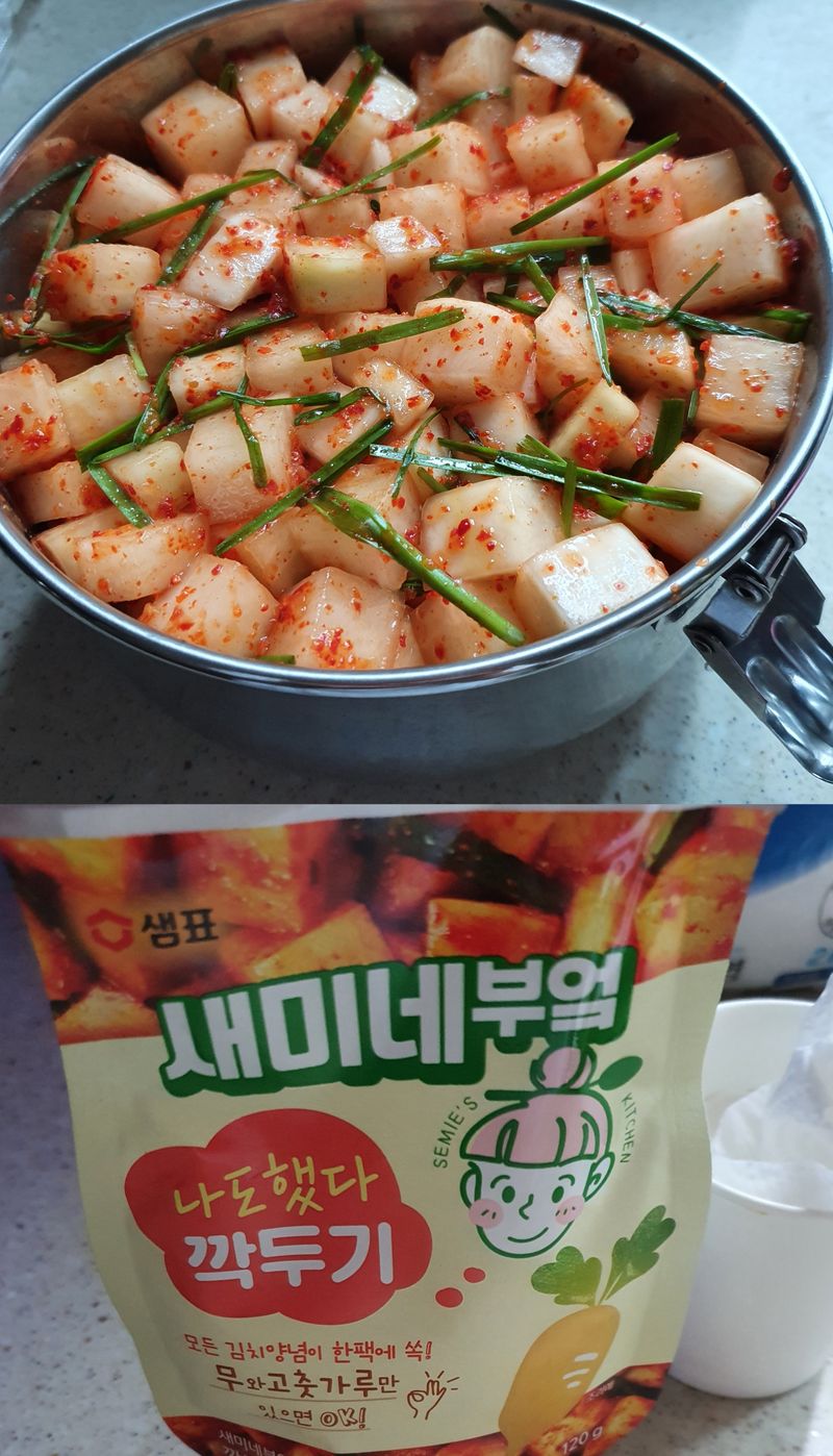 이걸 홍보로 오해해서 올려야하나 말아야하나 ..고민하고 살짝이 올려봅니다.아이들이 깍두기를 좋아하는데 항상 좀 달거나.짜거나 해서 잘 안해주게 되고 사먹었는데 이거 출시된 이후로 완전 손쉽게 후다닥 깍두기를 해주고 있답니다.샘표에서 하는 이벤트라고 올리는게 아니라 진짜 3살 조카도 좋아할만큼 괜찮트라구요..올케한테 이제품 썼다고 얘기해줘서 집에서 잘하드라구요..ㅋ다른제품도많치만 호불호가 갈려 손이 잘 안갔는데 이거 만큼은 놓칠수 없드라구요..한번 애들한테 해서 줘보시면 아실꺼예요^^나의음식 할때도 행복하지만 애들 음식할때는 왜이리 행복할까요ㅎ 이게 부모고 엄마라서 그렇겠지만요.ㅎㅎ