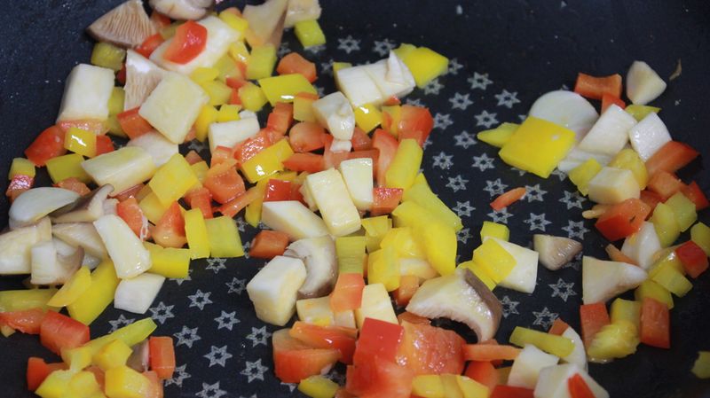 아몬드, 올리브유, 파프리카, 새송이버섯, 치즈 등을 넣어 만든