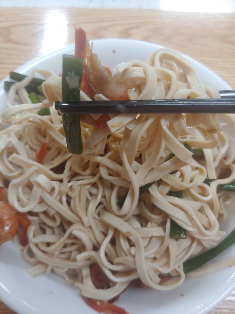 마늘쫑새우볶음은 여름입니다 물에 헹군 두부면을 넣어 휘적이면 어느새 완성된 마늘쫑새우볶음면 여름을 보내는 지금 너무 덥지도 춥지도 않은 오후의 시간에 딱 알맞게 먹었습니다