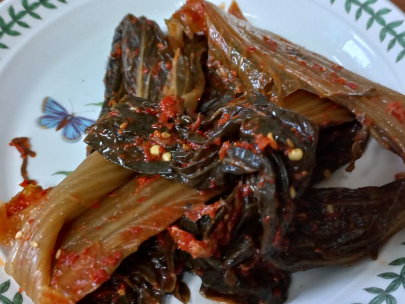 3. 치트키 첫번째! 신김치 쫑쫑 썰어서 얹기+버섯도