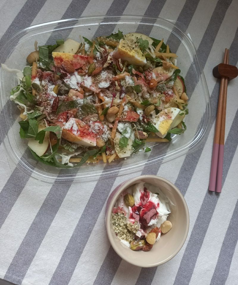 추석명절 엄청 먹어서 늘어난 몸무게를 위한 급빠 도전!! 샐러드와 요거트와 함께~ 베리류 섞은 가루넣어만든 샐러드!! 나를 위한 요리예요.