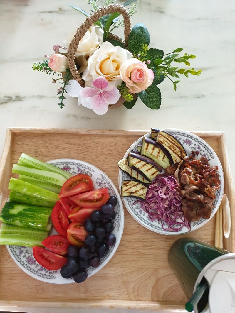 고기 담백하게 구워서 좋아하는 야채들과 함께 먹으면 든든하고, 칼로리 부담없어서 좋아요.