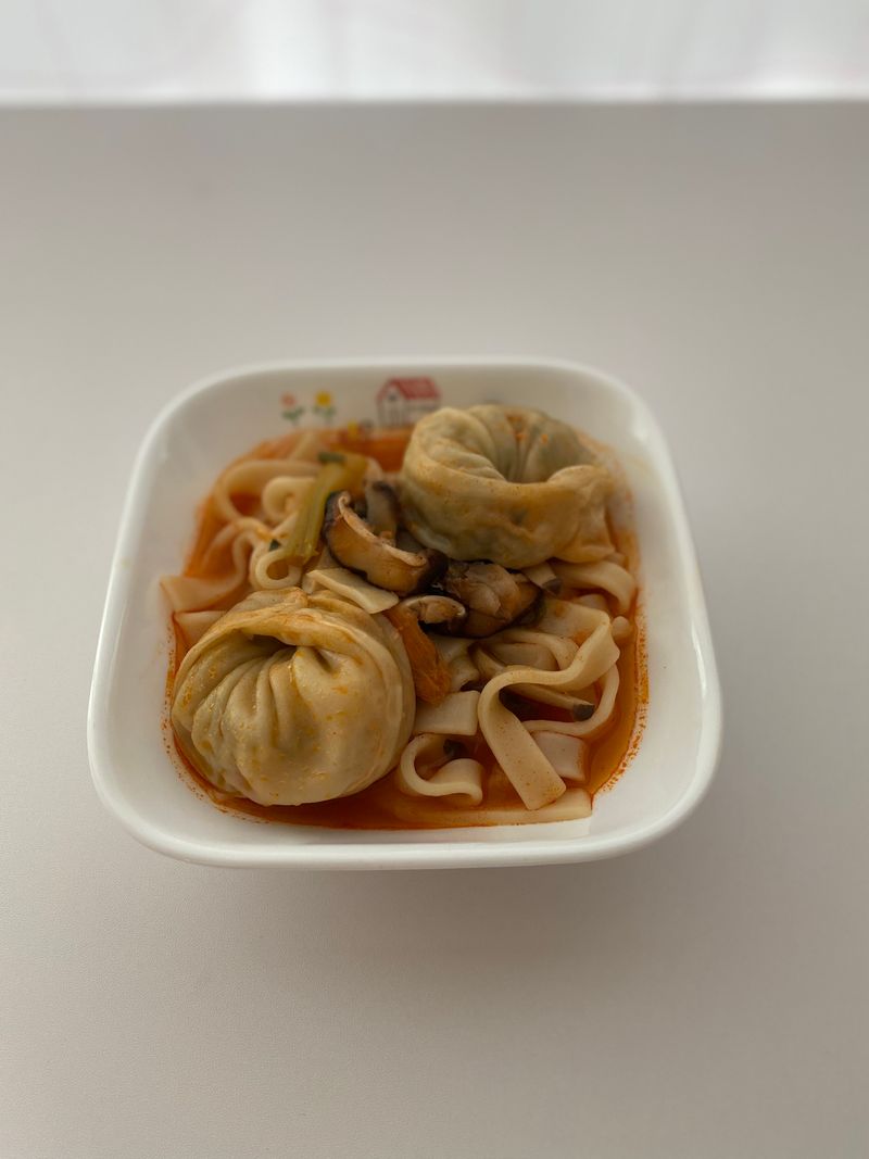 왕만두가 큼직하니 얼큰한 국물, 아부지 버섯이랑 찰떡같이 보여요~